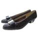 サルヴァトーレフェラガモ Salvatore Ferragamo 美品 ヴァラリボン クロコ型押し パンプス ラウンドトゥ ローヒール 茶 約22.5cm