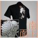 和柄南面王髑髏(どくろ)丸首半袖Tシャツ