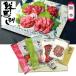 かにと辛口しょう油で仕上げたかに豆と、えびをまるごと使って焼きあげたえび豆、いかを練り込み香ばしく仕上げたいか豆、かつおのコクと香りがおいしいかつお豆。