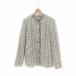 セオリーリュクス theory luxe 23SS Crevon Trudel ツイードジャケット ノーカラー フリンジ 038 白 青 黒 /MI ■OS レディース