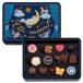 三日月に乗った猫を描いた幻想的なネイビーの缶パッケージに、ハートやバラ、猫の形のチョコレートなどを詰め合わせました。フルーツやナッツ、はちみつなど味のバラエティも豊か。缶パッケージは、リユースしたくなる可愛さ。