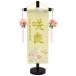 柔らかな菜の花色の生地に、桜と毬の刺繍が入っています。飾り台は白木です。