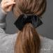 シックな色合いが上品なベロア生地の大きめリボンシュシュ。ラフな雰囲気のスクエアリボンがアレンジをグッとお洒落に仕上げます。サッと装着できるシュシュで普段使いにピッタリ◎
