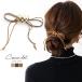 上品デザインの透かしパーツとスエード調のコードリボンをミックスした新鮮な印象のポニーフック。いつものヘアスタイルにプラスだけで旬な後ろ姿にアップデートしてくるので毎日に活躍しそう◎
