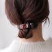 カーブラインが優美なマーブル模様のバンスクリップ。スリムでコンパクトな見た目ながら、ホールド力は抜群。シンプルに束ねたまとめ髪やお団子ヘアに挟むだけで一気にこなれ感がアップするから、デイリーユースに◎