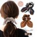 落ち着いた色合いと柄が大人可愛いスカーフリボンシュシュ。