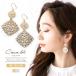 繊細な透かし模様のモチーフを2つ連ねた大ぶりなピアス/イヤリング。