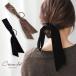【全品送料無料⇒10月26日23:59迄】シュシュ リボン ベロア ベルベット 光沢感 アシンメトリー 小さめ ヘアゴム ヘアアクセ シック パーティー