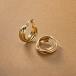 3連メタルの存在感が目を惹くフープピアス。ひねりを加えた立体的なシルエットがエレガントな艶めきを放ち、顔周りを華やかに演出します。流れるようにクロスしたデザインが、どの角度から見ても美しい大人なアクセントをプラスしてくれるひと品。