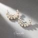 ビジューとパールのデコラティブなムーンブローチ。大きさの異なるパールとビジューを贅沢にあしらったムーンデザインで、胸元をパッと明るく華やかに飾ります。