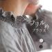 フリル襟 シャーリングブラウス シャツ m.n 刺繍リップル レディース M〜3L/ カジュアル きれいめ コットン ギャザー 長袖 トップス インナー エコロコ sel, Ms, Ls, LL, 3L,/ 春 秋 冬 24AW0823, ギフト プレゼント 贈り物 クリスマス
