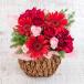 秋から冬へ、ゆったりと咲き誇る旬のバラに、心からの感謝と愛情を込めて。 情熱的な愛を意味する赤バラと、優美を象徴するカーネーション。強い絆と感謝の気持ちを、豪華なアレンジに託しました。赤いガーベラの花言葉は「前進」。明るさと、濃いグリーンのコントラストが、お祝いムードを盛り上げてくれます。お誕生日や記念日などの贈り物におすすめです。