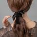 ゴムで結んだ髪にフックを差し込み、クルっと巻き付けるクラップカフ。結び目全体を覆うリボンで角度から見ても美しく仕上がります。