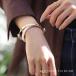 ゴールドバングルとリアルレザーを重ね付けしたような2連デザインで手元に存在感を与えてくれます。