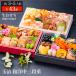 ●内容:(全43品)味付け数の子、金胡麻マグロの佃煮、黒豆、きんとん、栗甘露煮、にしん大漁漬け、紅白なます、たつくり、有頭海老塩焼き、市松蒲鉾、伊達巻、京餅手まり、筑前煮、梅型人参、トラウトサーモン西京焼き、高野豆腐、紅あずま甘露煮、海老チリソース、中華わかめ、酢豚、中華くらげ、中華タコ山菜、中華帆立ひも、中華肉団子、チキン中華テリーヌ、ゴマ団子、中華搾菜、合鴨串照り焼き、チキン三色巻き、若桃甘露煮、海老マヨネーズ、海鮮マリネ、若草チーズ和え、彩り野菜のマリネ、イカのゴロゴロサラダ、海の幸サラダ、ポークパストラミ、鮭チーズオードブル、鶏つくね串、サーモンクリームチーズ和え、ローストポーク、海老とブロッコリーのテリーヌ、合鴨スモーク