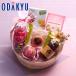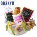 カスタードプリン75g×2、チョコムース75g×2、モザイククッキー(バニラ&イチゴ×6・バニラ&抹茶×6・チョコ&ブルーベリー×4)、クッキー(チョコチップ・ココナッツ)×各4、ヴァッフェル(ブルーベリー×2・ストロベリー)、ほうじ茶寒天72g×2、くず餅(黒みつ付)72g×2、くず餅抹茶(黒みつ付)72g×2、京羊羹64g×2、ぷりん(抹茶・豆富)各64g×各2、洋風煎餅(ばにら×4・抹茶×2)