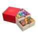 引き出しを開けると、ひと口サイズのカラフルなお菓子がたくさん!上の段にはフルーツやティラミスなどの5種類のチョコレート。下の段にはフィナンシェやマドレーヌなどの6種類の焼き菓子が。華やかなギフトボックスに仕上げました。