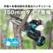 直流18V、スライド式Li-ionバッテリ仕様。バッテリ・充電器別売。ガイドバー長さ:150mm。チェーンスピード:480m/分。チェーン形式:80TXL-32E。オイルタンク容量:55mL。1充電作業量(目安):ひば材50mm約440本※数値は参考値です。バッテリの充電状態や作業条件により異なります。