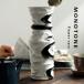 マットな陶器素材のホワイト×ブラック配色フラワーベースで、高さ30cm・開口部約9cmの立体的曲線デザインが特徴の送料無料インテリア花瓶です。