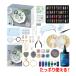 ■セット内容:大容量レジン120g×1、レジン用着色剤各10ml×7色(レッド、パープル、スカイブルー、グリーン、イエロー、ホワイト、ブラック)、UV-LEDライト×1、ジェルマット×1、調色スティック×2、調色カップ×2、研磨パッド×1、精密ピンセット×1、平ヤットコ×1、モールド型×3、透明フィルム×1、キラキラ小瓶×48、シェルフレーク×6、メタルパーツ(シルバー&ゴールド)×24、デザインフィルム×2種、ミックスパーツセット×1、ミール皿×2、空枠×2、アクセサリー用金具セット(カニカン、丸カン、ヒートンキャップ、ネックレスチェーン、イ...