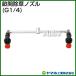 ノズル間隔(2頭口間)が23cmと畝間に適した長さとなっております。また、ノズルは、キリナシのため低飛散で安全性が高く、自在エルボに取り付けているため、噴霧方向も調整が可能です。