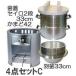 (餅つき道具 かまど 4点セットC) ホームカマド42型 羽釜33cm 長生セイロ(公徳セイロ)33cm2段(体のみ2) 釜木フタ36cm (餅つき 炊き出し もちつき 瀧商店)