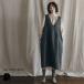 fog linen work フォグリネンワーク ヴィルニス Vネックワンピース グリーブルー ジャンパスカート ロング丈 ゆったり 2025 冬