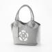 正面に大きく配されたカメリアが目を惹くトートバッグ。