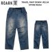 ストレッチ性のあるデニム生地を採用し、エイジング加工で膝や後部に色落ちを再現。