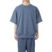 スパンポリエステル糸を使用した半袖スウェット。ポリエステルを使用した薄手の裏毛素材は、軽量で色褪せしにくく、速乾性に優れているのが特徴です。ゆったりとしたシルエットですが、ネックや裾のリブをキツめに調整し、動きの邪魔にならないよう調整されています。着用者:身長180cm 体重65kg着用サイズ:L
