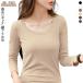 ストレッチ 深め レディース 襟ぐり広め カットソー 長袖 保温 Uネック 肌見せ 深あき 深め インナー あったか リブ 肌着 インナーシャツ ボー