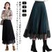スカート プリーツスカート レーススカート リバーシブル レース 無地 フレア ミモレ丈 スカート レディース Aライン オフィス 可愛い 裏地付き