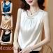 レディース インナー キャミソール 無地 サテンシャツ シルクタッチ フォーマル トップス ノースリーブ ブラウス タンクトップ 大人エレガント 光沢感のある