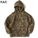 F.A.T.オリジナルのTREEカモフラージュが印象的なスウェットパーカー。程よい肉感のT/C裏毛起毛素材を採用し着心地の良さを追求したアイテム。総柄パターンをアクセントにして、いつもとは一味違うカジュアルスタイルを楽しみたい。ポケットのブランドネームもさり気なく主張してくれる。