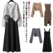 レイヤード ニット セットアップ ワンピース 長袖 ニットセーター 上下セット ニットセットアップ 春 秋 冬 ロングワンピース カジュアル シンプル