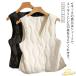 ノースリーブ 中綿 黒 保温 女性 中綿ベスト アウター 防寒 前開き 前ボタン おしゃれ ベスト Vネック ブラック 暖かい あったか 白 薄手 レ