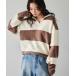 キーワード:ニット セーター レディース ボーダー 長袖 アメリカントラッド スポーティー ドライブ 公園 大人カジュアル 旅行