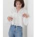 キーワード:ブラウス シャツ レディース ショート丈 フリル リボン 開襟 長袖 無地