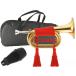 【以下対応不可 北海道 沖縄 離島 代引き 同梱不可】知っている方は懐かしい信号ラッパ。信号を周りに伝える道具として軍隊や消防団,自衛隊などの合図などに使われてきました。ピストンは付いておらず出せる音は自然倍ドソドミソドだけ。トランペットの何も押さえない状態と同じでシンプルな構造。マウスピースだけで音階が出せる方は曲が演奏できるかも!他の金管と同じく管を巻いて作られてあります。ビューグルは三回巻 (三つ巻) 他に二回巻(二つ巻)も存在しており 大きくはこの2種が主流。本体には紐(下げ緒)が巻いてあります。移動も多い為 吊り紐としても使用され 装飾がきれいですね。マウスピースの装着方法は2つのラインナップがあり こちらは通常の金管楽器と同じくストレートのマウスピース。■J.Michael Jマイケル ATR-150A 信号ラッパ 訳あり アウトレット (演奏には全く問題ありません。)■G調■3つ巻■マウスピース:ストレート式■ベルサイズ=約125mm■ベル:イエローブラス■クリアラッカー仕上げ■セット:サイレンサー(トランペットミュート 弱音器),ラッパ 本体,ケース,マウスピース,保証書/取説,クロス,朱紐,房