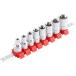 収納ケース付き E型トルクスねじの締め付け・緩め作業に適しています。専用の収納ボックスを装備し、収納しやすいように各位置に寸法が刻印されています。