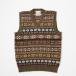JAMIESON'S(ジャミーソンズ)のAOFI VEE NECK SLIPOVER。お馴染みのVネックのフェアアイルベスト。スコットランド・シェットランド諸島産の上質な羊毛を植物染色し、色鮮やかな幾何学模様に編み立てたフェアアイルニット。 美しい発色とナチュラルな柔らかい風合い、軽くて暖かい着心地が特徴的なベストです。ミドルゲージのニットになるのでアウター、インナーどちらでも対応可能。スタイリングのアクセントとして取り入れやすいオススメの1着です。