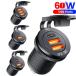 QC3.0 & PD対応Type-C含む3ポートで、カーナビとスマホの同時充電や、家族旅行での複数端末まとめて充電にも。
