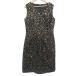クチーナ kuche フレアワンピース ひざ丈 ノースリーブ Vネック 総柄 40 黒 ゴールド ブラック /FF7 レディース