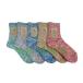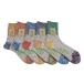 特殊なL型ツイスター編み機を使用し6色の鮮やかな杢を再現しています。L型インターシャ編という土踏まずの部分の編をリブ編にして、履いた時始め少々タイト気味できつい感じはありますがよりよく足にフィットする構造になっています。