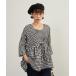 商品名:On One's Own ギンガムチェックプルオーバー・スクエアネック・前リボン7分袖トップス