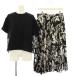 サカイ sacai 24SS Floral Print セットアップ Tシャツ カットソー 半袖 プリーツスカート ロング 2 黒 24-07054 24-07063 /KH レディース