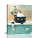 【並行輸入品】 Cat Bathroom Wall Art Cute Black Cat Pictures Farmhouse Rustic Bathtub Wall Decor Canvas Print Painting Artwork for Bathroom Living Roo