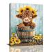 【並行輸入品】 Quorin Highland Cow Bathroom Wall Art,Farmhouse Cute Cow Sunflower Pictures Wall Decor,Rustic Country Teal Canvas Prints Painting Artwo