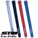 4本1組のアーチ型テクスチャーを平織状に交互に配列することにより、全方位への滑りに強いモデルに仕上げました。カーボンエンボスの配列パターンを1/100mm単位でサイズ調整し、360度同じパターンで組み合わせることでパート面をなくして、どの向きで挿しても変わらないパフォーマンスを発揮します。STM定番モデルのMシリーズをベースにサイズ設計を見直し、利き手部分を少し太くするとともに、グリップエンドから約1インチ(小指あたり)部分をやや細くすることで、より握りやすい形状に設計しています。フランスのシューズメーカーであるパトリック社とのコラボレーションモデルです。