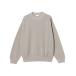 カットソーがウールからコットンに変わった1930年代からある挟み込み仕様の腰リブ。首まわりには伸縮に富むV字のフライスを前後に配した四本針仕様のスウェットです。肩口から垂直に落ちる袖口のセットインスリーブはややソリッドな印象を受けるシンプルなデザインですが、腰帯のバインダー仕様は着込むほどにアタリが生まれます。